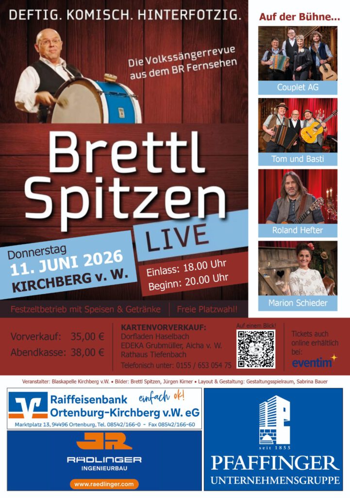 Einer der Höhepunkte unseres Jubiläums Festes präsentieren wir am Donnerstag den 11. Juni 2026 die aus dem BR Fernsehen bekannte Volkssängerrevue